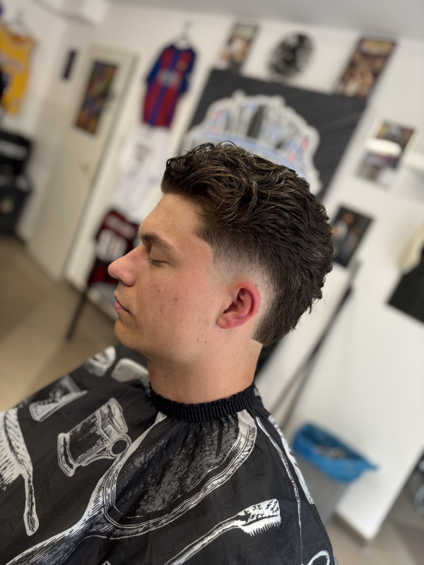 Konzultálás a borbéllyal, felül ollozás a kért fazonra, borotvából induló átmenet, finiselés és mosás (ha kéred).